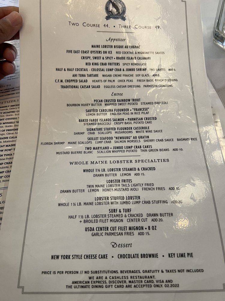 All Jumbo Maryland Crab Cake, Jumbo Shrimp, Jumbo Scallops & Salmon Filet.